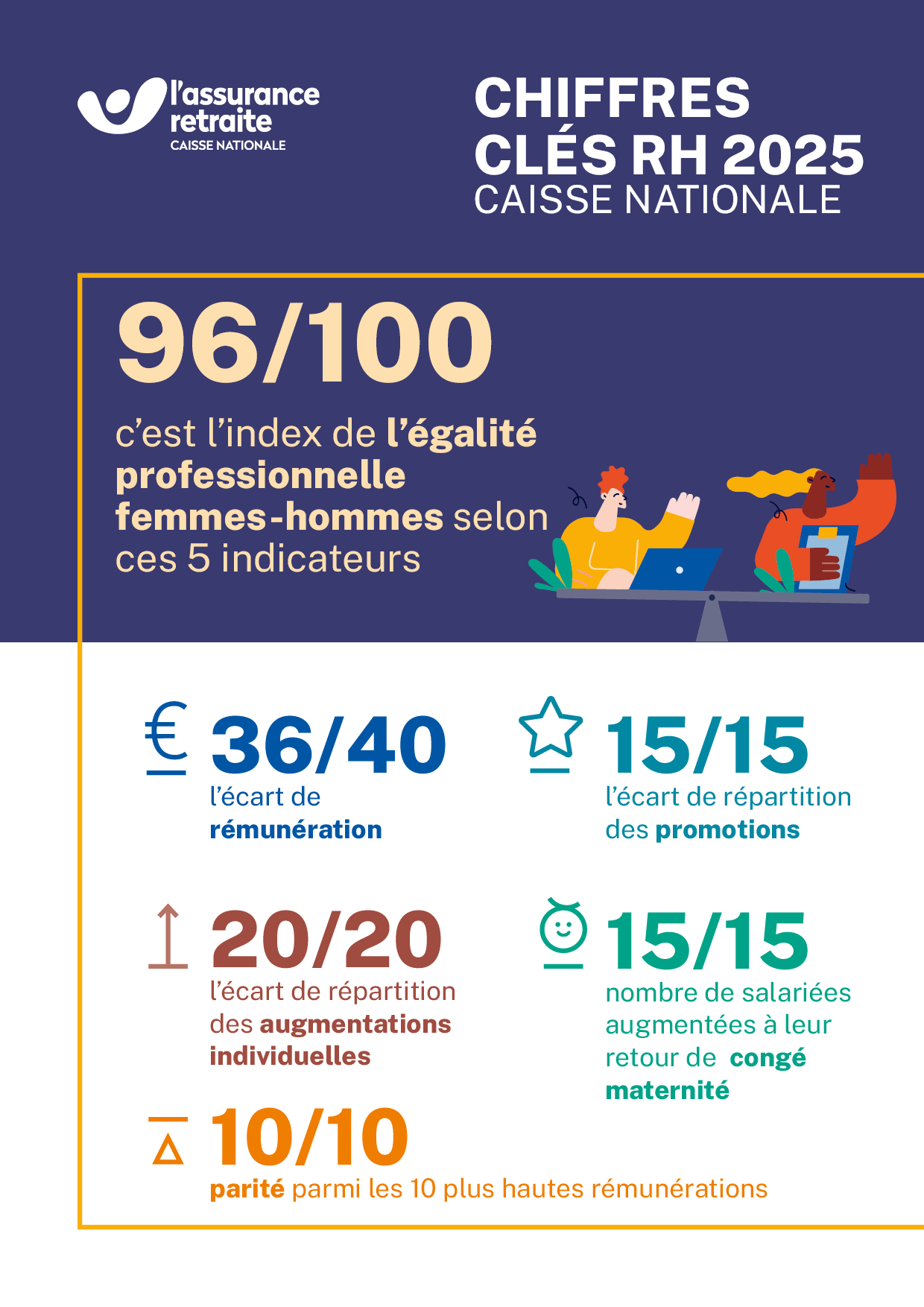 La Caisse nationale de l’Assurance retraite obtient la note de 96/100 à l’index de l’égalité professionnelle femmes-hommes 2025.